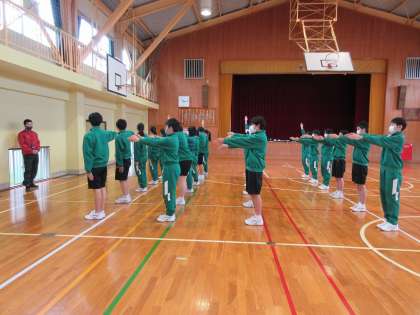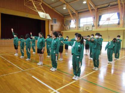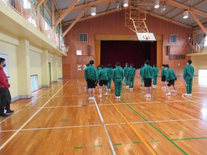 2年生が保健体育の授業で集団行動の学習をしていました。