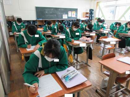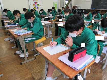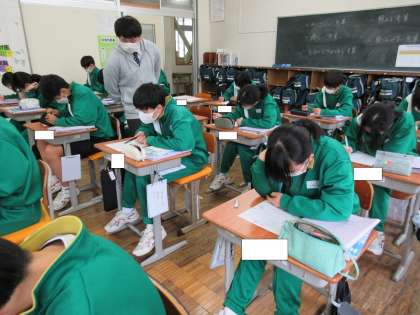 2年生が、英語の授業で英文を正しい英文にするという学習をしていました。