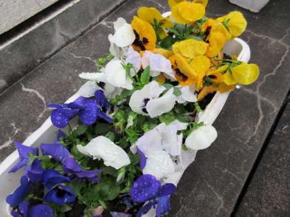生徒玄関前のパンジーが今日も生徒たちを迎えてくれます。