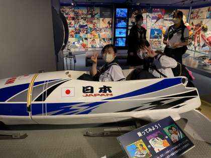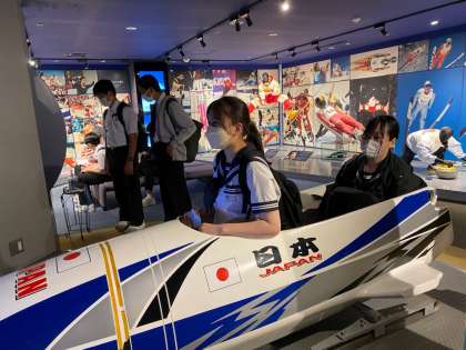 オリンピックミュージアムでボブスレー体験です。