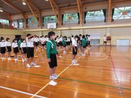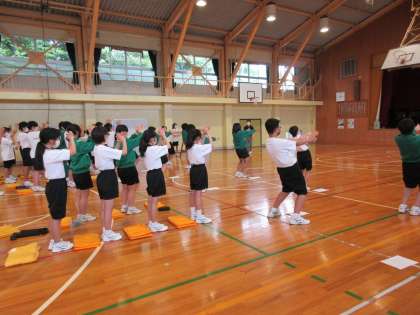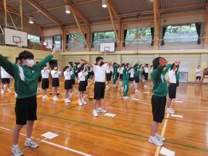 1・2年生が来週の壮行会に向けて練習をしていました。