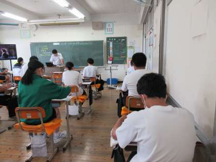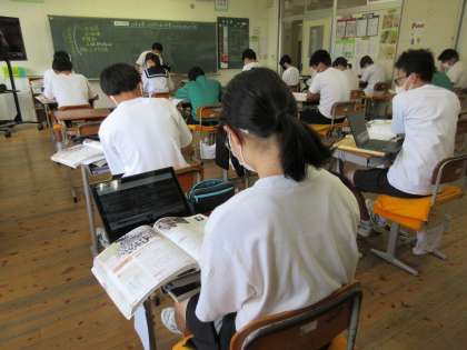生徒は、これまで学習してきた内容や教科書に書かれている内容を読みながら