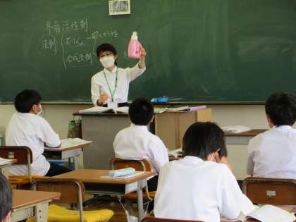 生徒は、洗濯洗剤といっても用途によっていろいろな種類があることを学習していました。