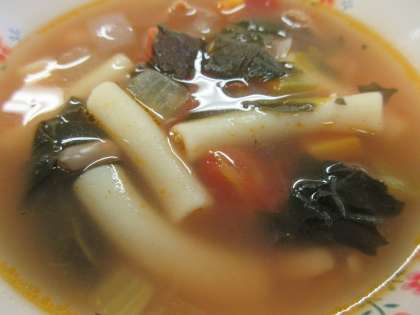 キャベツとほうれん草のソテー ミネストローネ スライスチーズです。
