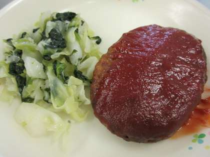 二つおりパン 牛乳 ハンバーグ(トマトソースがけ)