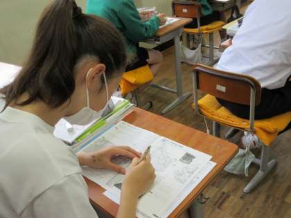 地形図の読み取りをしていました。