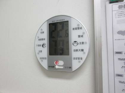 気温22.6度、湿度70%でした(保健室前の室温と湿度です)。 湿度が高いですねぇ。
