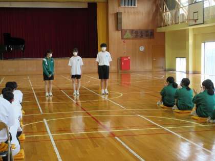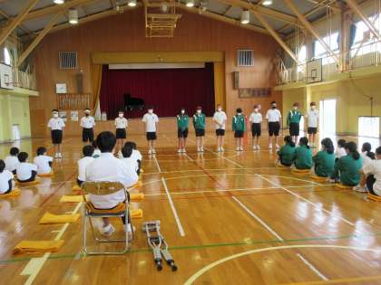 中体連大会を前に、各部の部長などから、力強い言葉を聞くことができました。