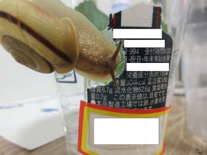 虫かごを見たら、入れてある容器に貼られたシールを食べているような気がしました。