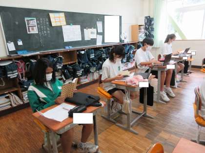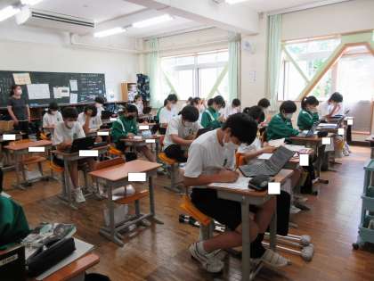 動画を視聴し、よりよい発表の仕方を学んでいる生徒もいました。