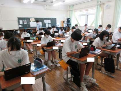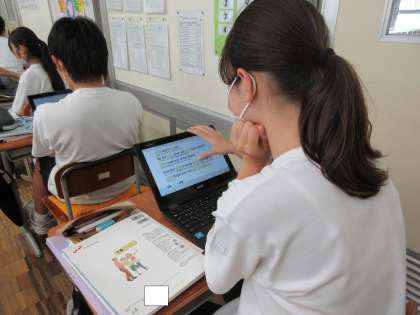 ※クロームブックに表示される英語の教科書は、本文の単語が隠せるんです。