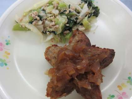 ご飯 牛乳 星形ハンバーグ 野菜と春雨の炒め物