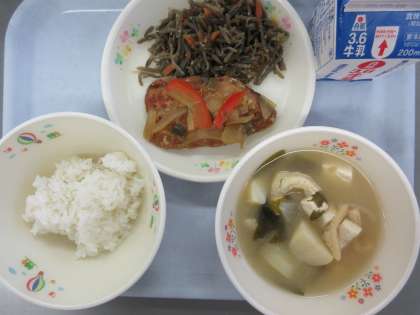 ご飯 牛乳 鰯の南蛮漬け きんぴらごぼう じゃがいもと大根の味噌汁