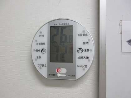 気温26.8度、湿度72%でした(保健室前の室温と湿度です)。