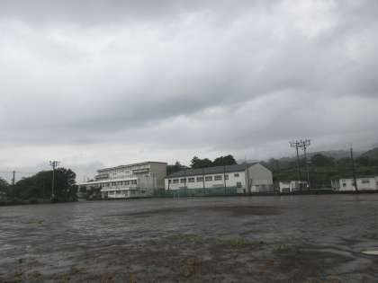 私が敷地を歩き始めた時には、雨が降っていましたが、校舎に入る頃にはやんでいました。