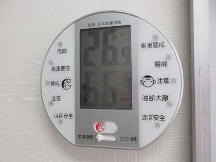 気温26.9度、湿度66%でした(保健室前の室温と湿度です)。