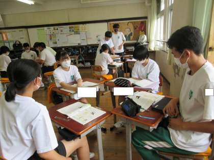 本文を読み、問題で質問されて内容に関係あるところに線を引くという学習をしていました。
