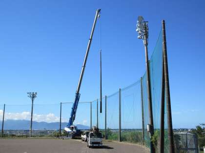 今日、業者の方に、第2グラウンド南側の電信柱を抜いていただきました。
