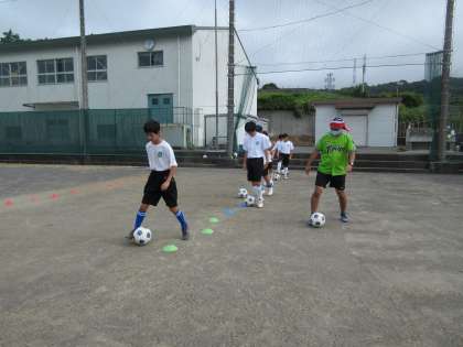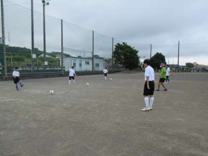 ドリブルの練習やパスされたボールをピタって止める練習などをしていました。