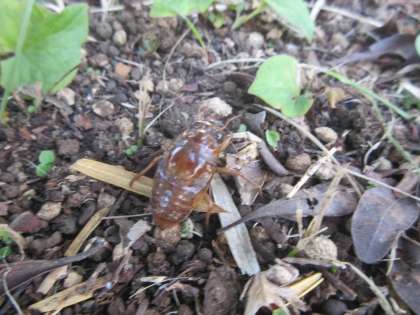 K先生が、敷地内の庭でセミの幼虫を見つけました。