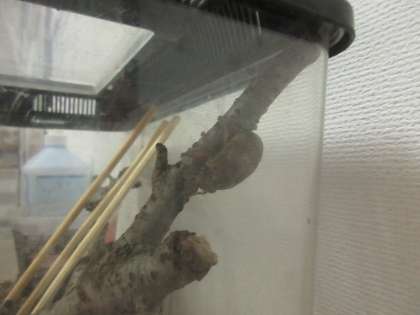 早速、虫かごの中に木の枝などを入れ、環境を整えてみました。