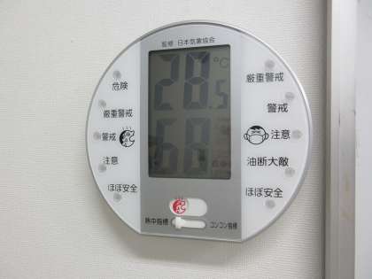 気温28.5度、湿度68%でした(保健室前の室温と湿度です)。