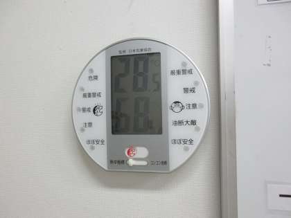気温28.5度、湿度68%でした(保健室前の室温と湿度です)。