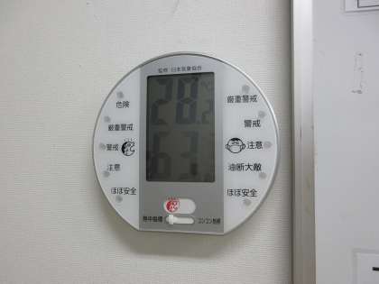 気温28.2度、湿度63%でした(保健室前の室温と湿度です)。
