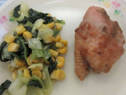 ほうれん草とコーンのソテー