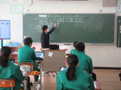 生徒の皆さん、どちらが需要の曲線で供給の曲線か