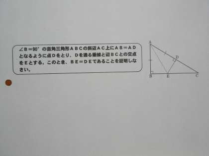 直角三角形の合同条件を使った証明をしていました。