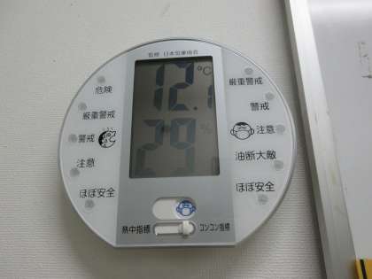 気温12.1度、湿度29%でした(保健室前の室温と湿度です)。
