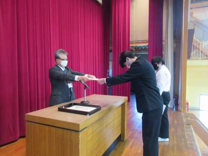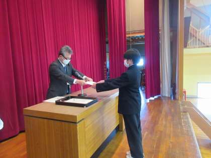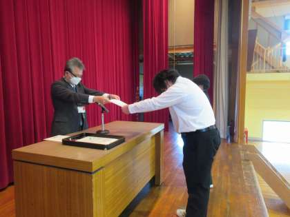 校長先生から、賞状が渡されました。