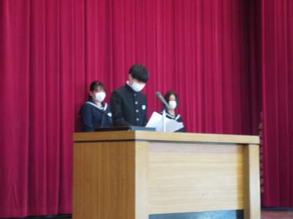 各学年の代表生徒が、新年の抱負を発表しました。