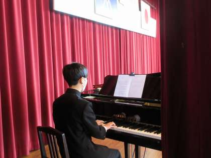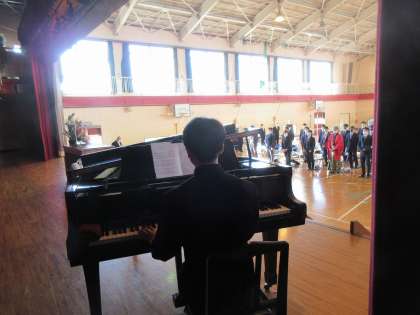 本校の生徒が 伴奏者として参加し 国歌等を伴奏しました