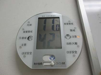 気温11.0度、湿度42%でした(保健室前の室温と湿度です)。