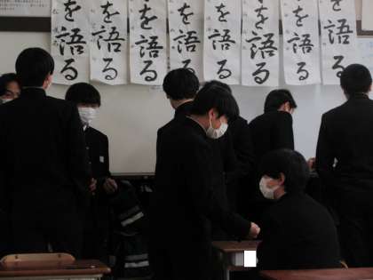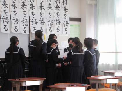 3年生がくつろいだり、次のテストの準備をしたりしています。