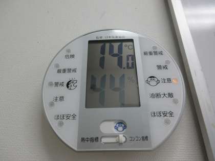 気温14.0度、湿度44%でした(保健室前の室温と湿度です)。