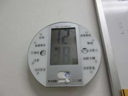 気温12.1度、湿度38%でした(保健室前の室温と湿度です)。