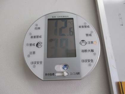 気温12.6度、湿度39%でした(保健室前の室温と湿度です)。