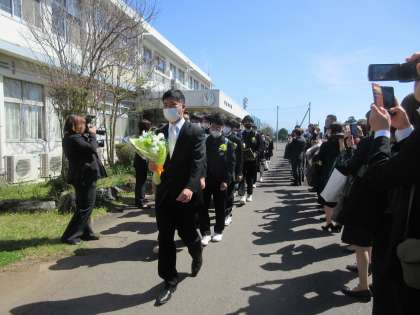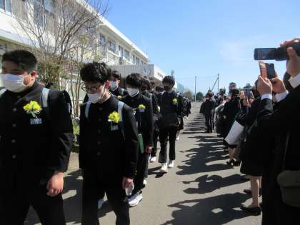 3年生を保護者の皆さんと一緒に見送ります。