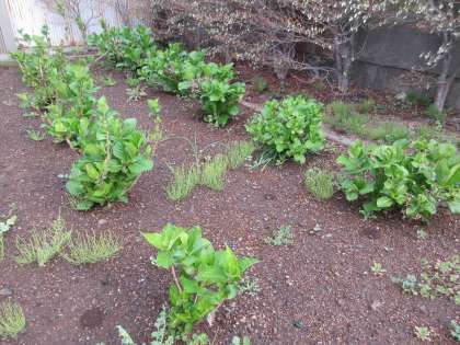 東門のところのアジサイです。 花は咲いていませんが 葉が出てきました。