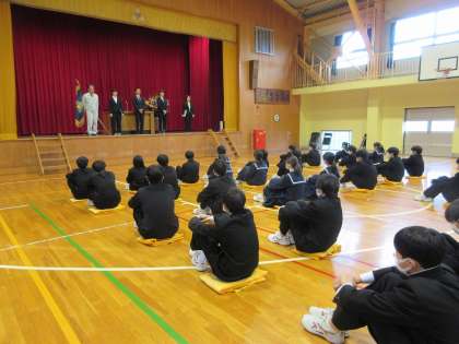 まずは、新しく見えた先生方をお迎えする着任式を行いました。