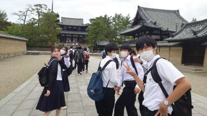 法隆寺にて。