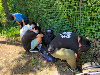 氷鬼が本格的に始まりました。逃げも鬼も白熱しています。3枚目の写真は、リュックに擬態する様子です。