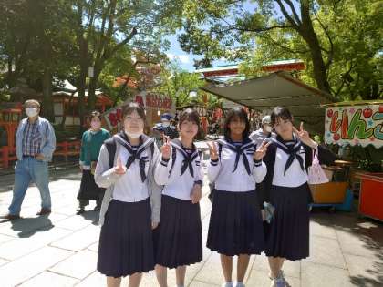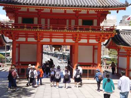八坂神社です。見学を終えた班が次へむかいます。