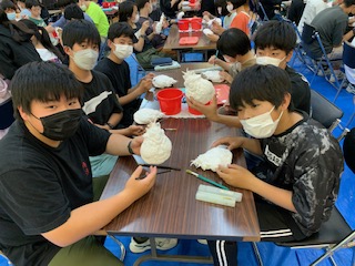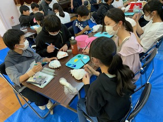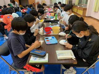 カニの甲羅の色付けが始まりました。個性的な作品ができそうです。