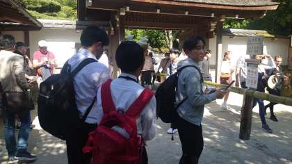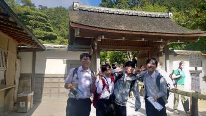 銀閣寺の出口で、これから入るグループに会いました。いってらっしゃーい。