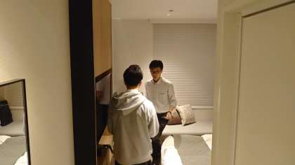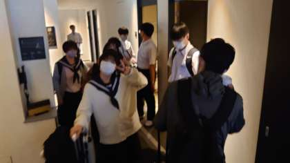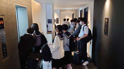 部屋の片付けチェックを受けて、ロビーに集合です。