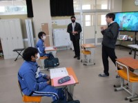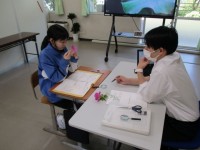 1組は理科です。植物の花のつくりを、実際の花を採取して、詳しく観察しました。2組は英語です。ALTの先生と一緒に学習をしました。